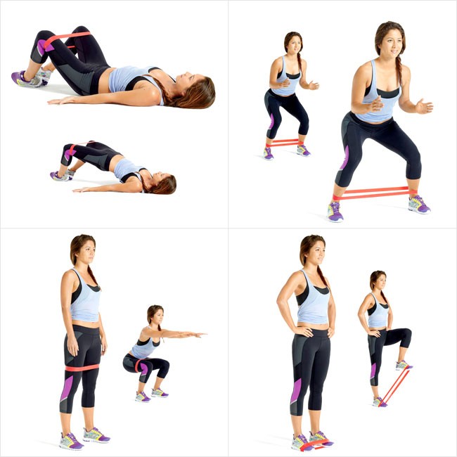15m each exercise, the mini band is close to the knee on the thigh.